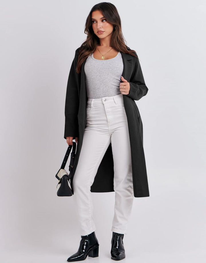 - Design - Newest addition to our sweater-blazer collection! Design lapel open front,long sleeve,slightly oversized,cozy fabric.