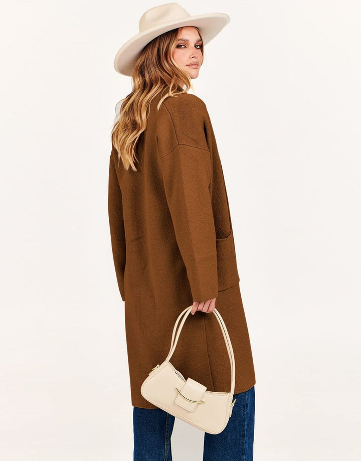 ANRABESS Women's 2023 Fall Cardigan Sweater Long Sleeve Open Front Lapel Coat Casual Knit Coatigan Jacket with Pockets