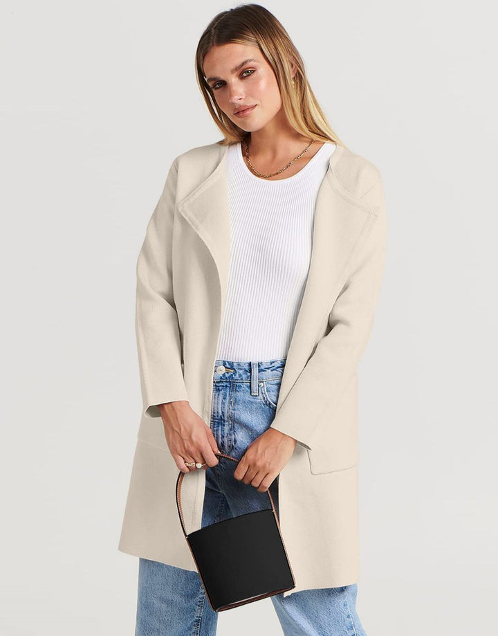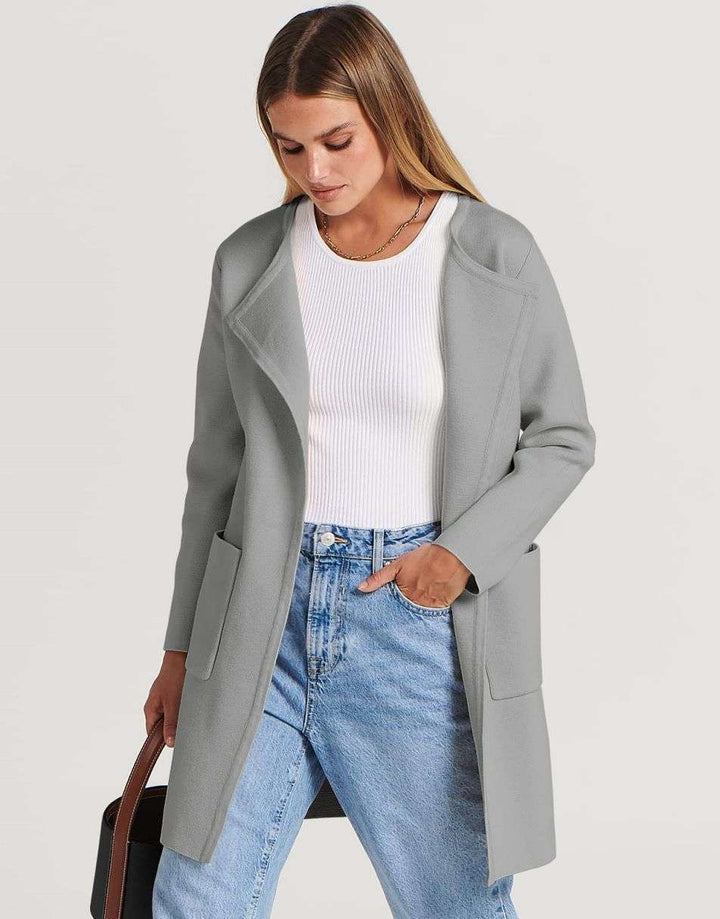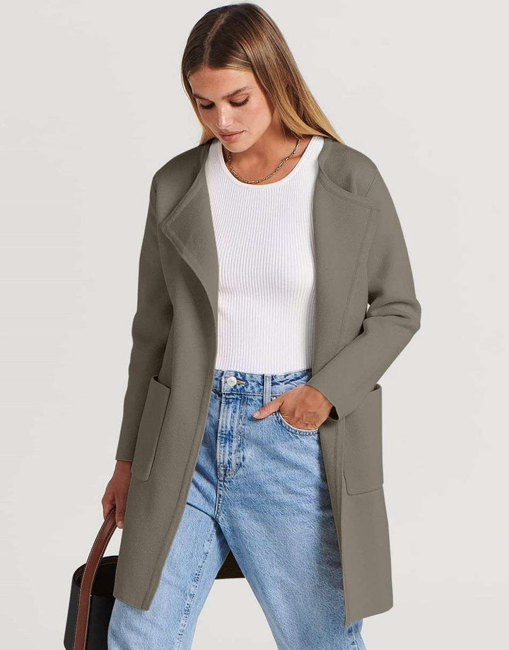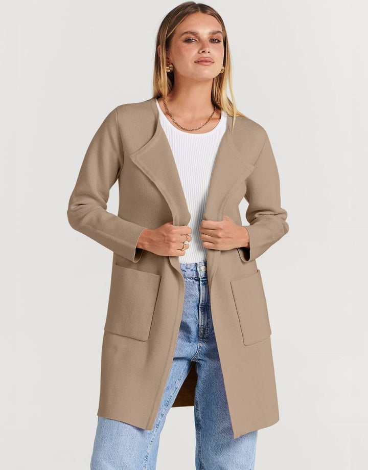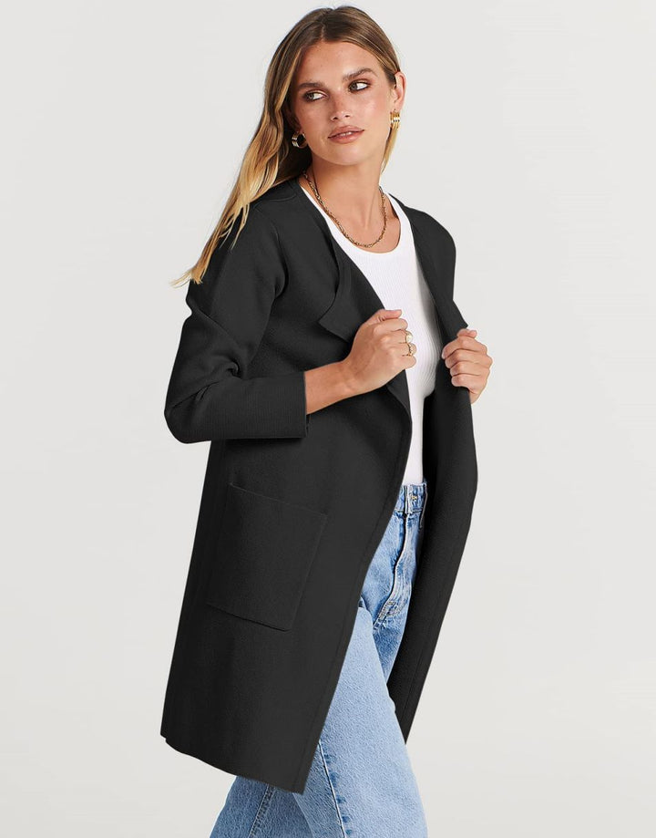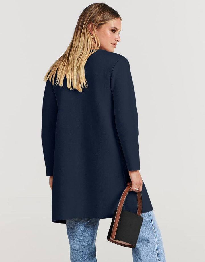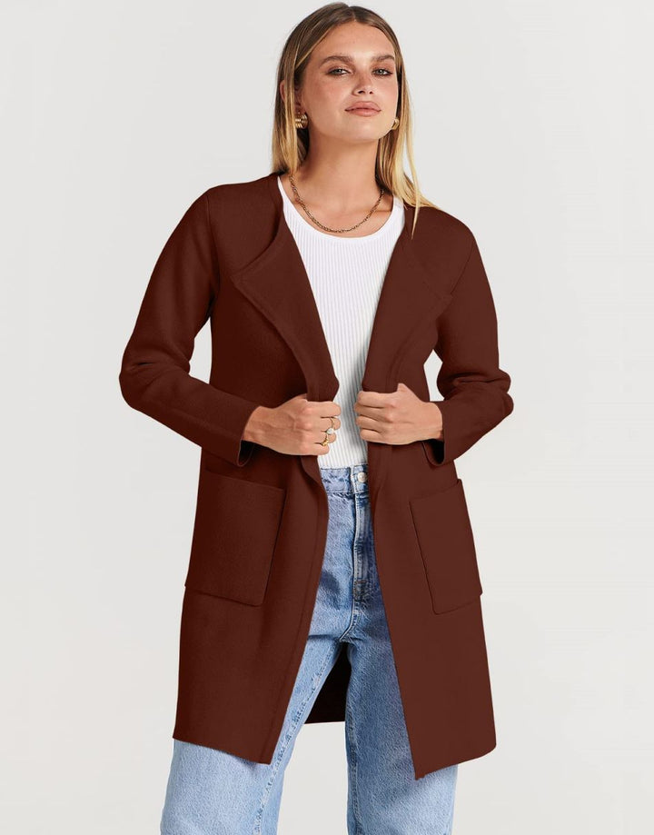 ANRABESS Women's Open Front Knit Cardigan Long Sleeve Lapel Casual Solid Classy Sweater Jacket