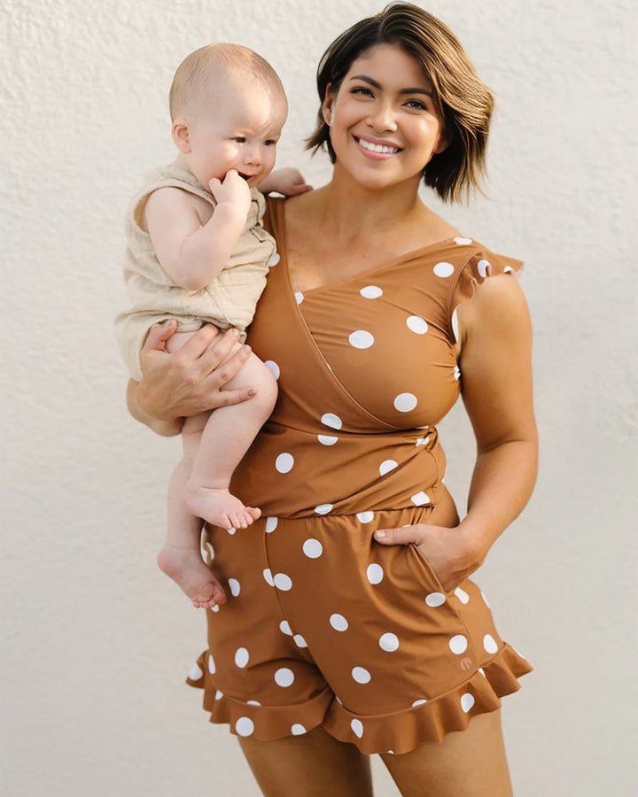 • With crossed v-neck, ruffle shoulder and hem design, nursing-friendly for moms and create a flattering look in style, ruffled sleeves and shorts come for a sophisticated take on a tropical-inspired look.