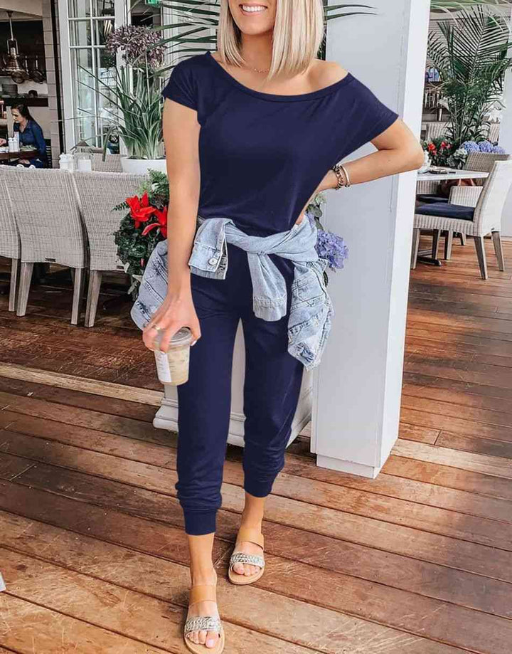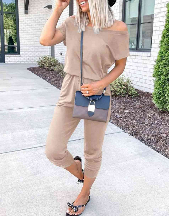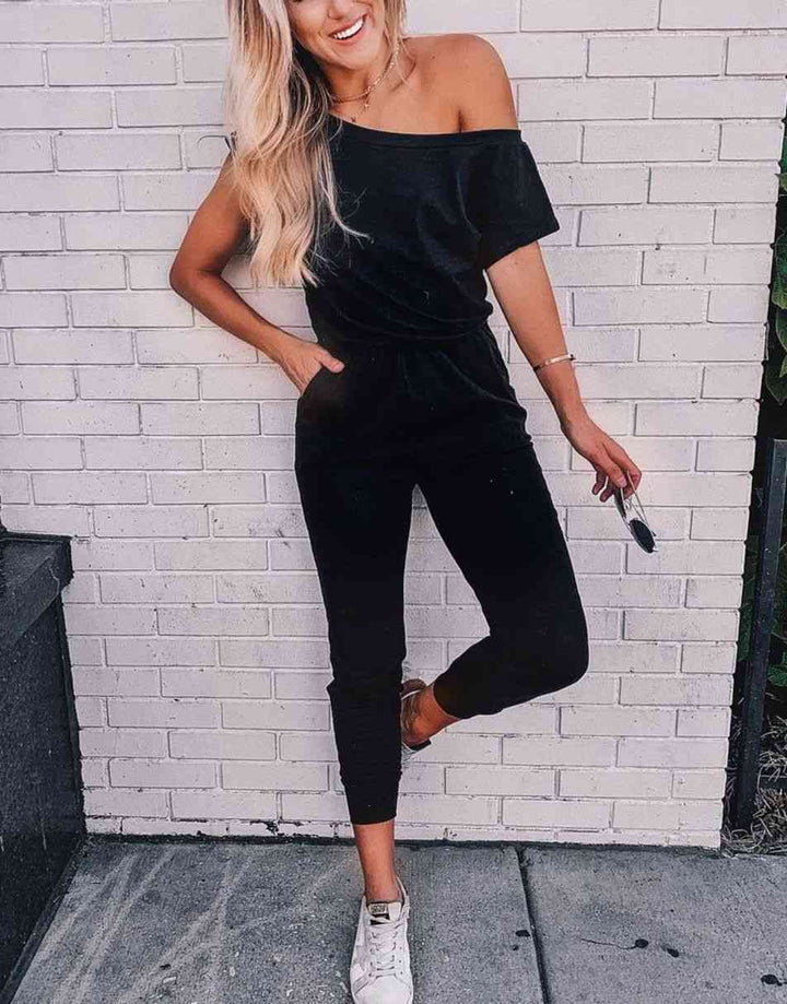 ANRABESS Casual Off Shoulder Elastic Waist Stretchy Long Romper Jumpsuit