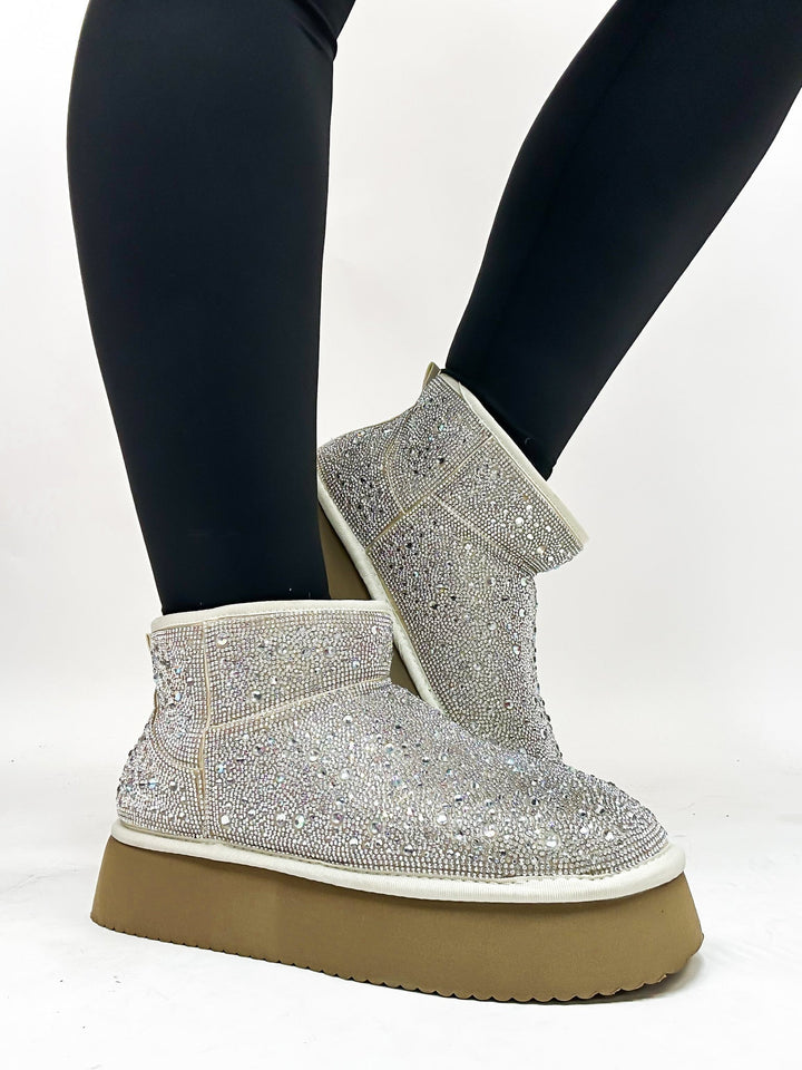 Elevate your style with Homebody shoes. These platform boots feature fun rhinestones , providing both fashion and function. Step confidently with added height and add a touch of elegance to any outfit.