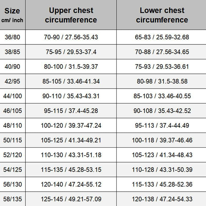 Size suggestions: Choose one size smaller for AB cups, one size normal for CD cups and one size larger for EF cups.