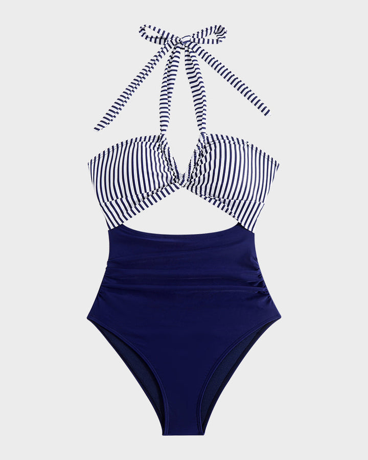 The halter neck provides excellent support and highlights your shoulders, creating a beautiful and sophisticated silhouette.Eye-Catching Cut-Outs