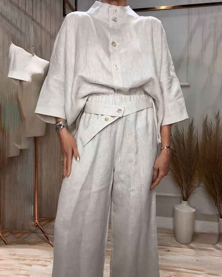 Stand collar design casual cotton and linen two-piece set
