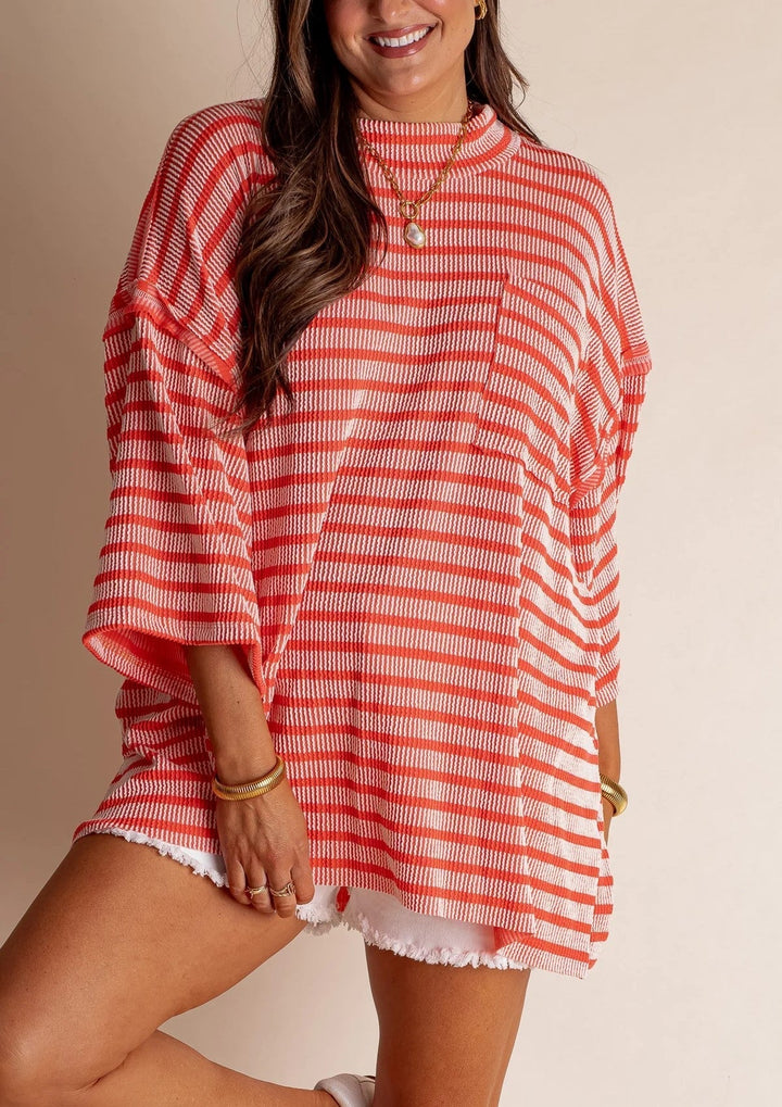 Our best-selling top just got a stylish upgrade! Meet the Oversized High Neck Urban Ribbed Top in a chic striped version—your new go-to for effortless, on-trend style. Featuring a unique urban ribbed texture, exposed seams, and an oversized front pocket, this top delivers both comfort and modern edge. The relaxed fit and raw edge hem add a street-style vibe that’s perfect for everyday wear.